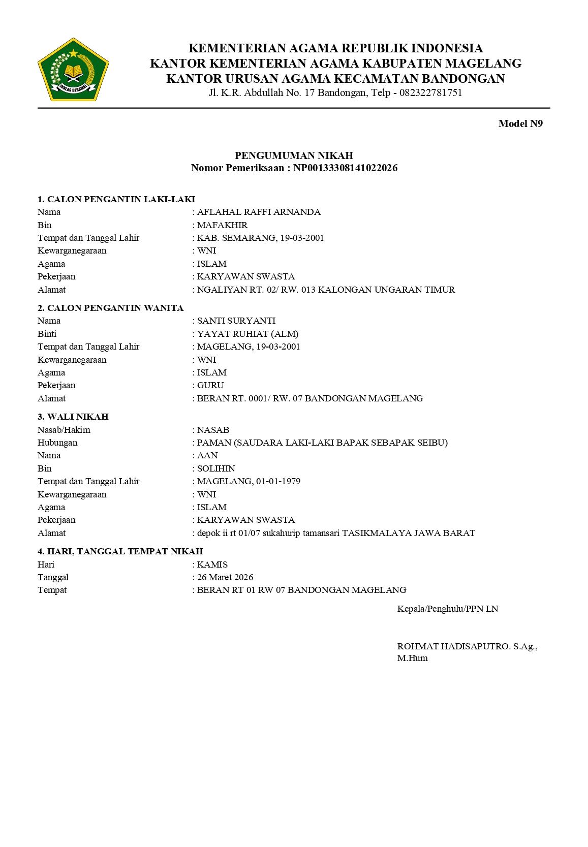 Nikah : 26 Maret 2026
