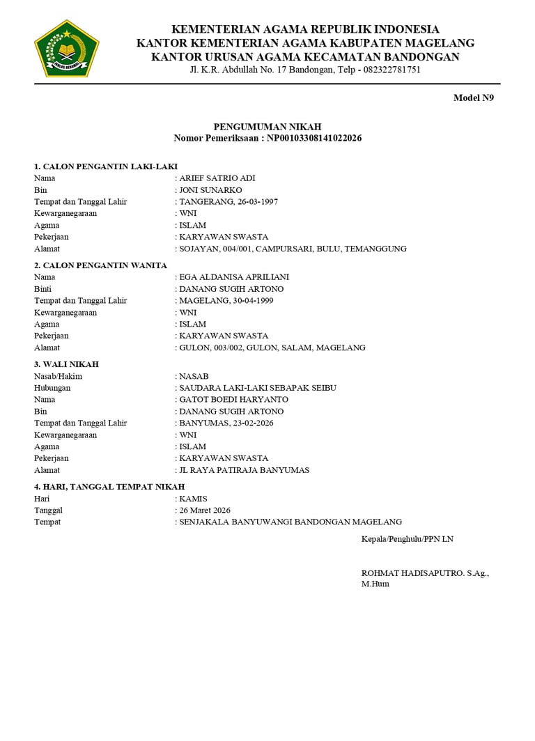 Arief Satrio Adi & Ega Aldanisa Apriliani