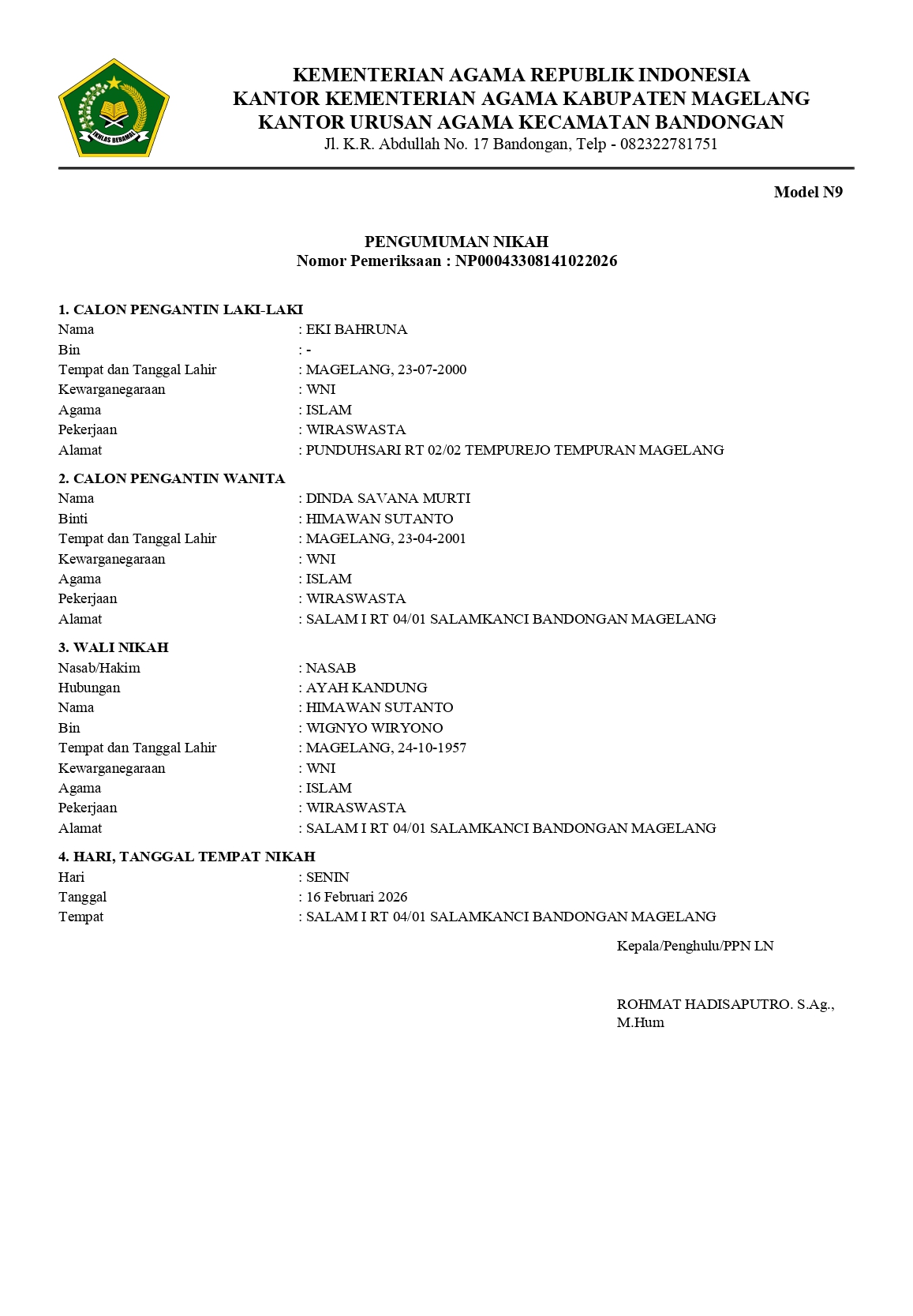 Nikah : 16 Februari 2026