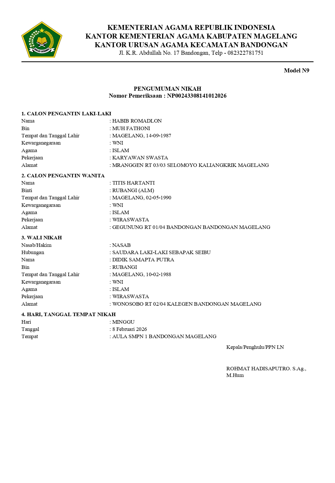 Nikah : 8 Februari 2026