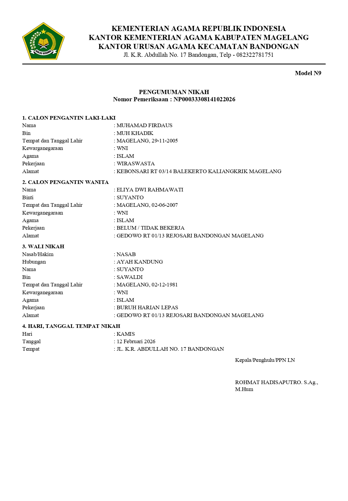 Selamat Datang di website resmi kantor urusan agama kecamatan bandongan