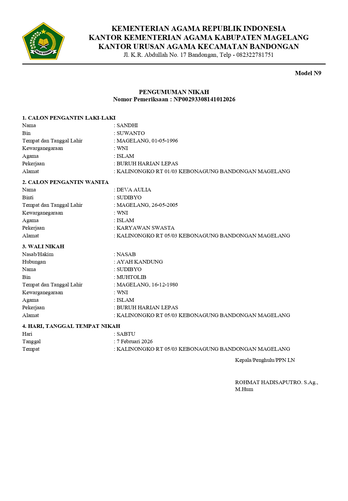 Selamat Datang di website resmi kantor urusan agama kecamatan bandongan