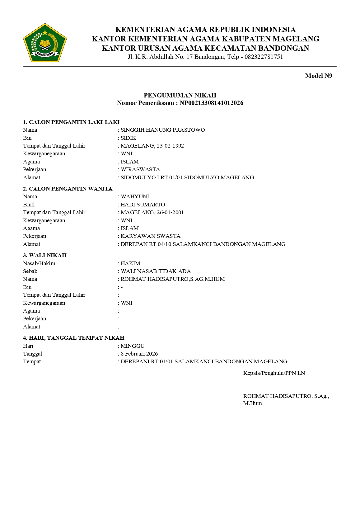Nikah : 8 Februari 2026