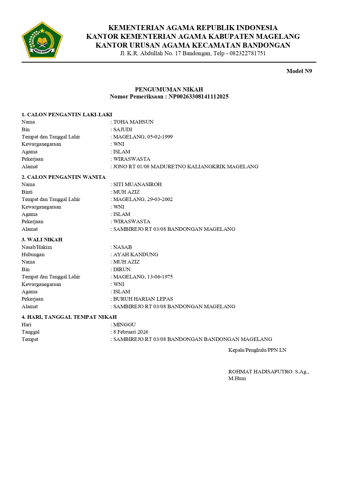 Selamat Datang di website resmi kantor urusan agama kecamatan bandongan